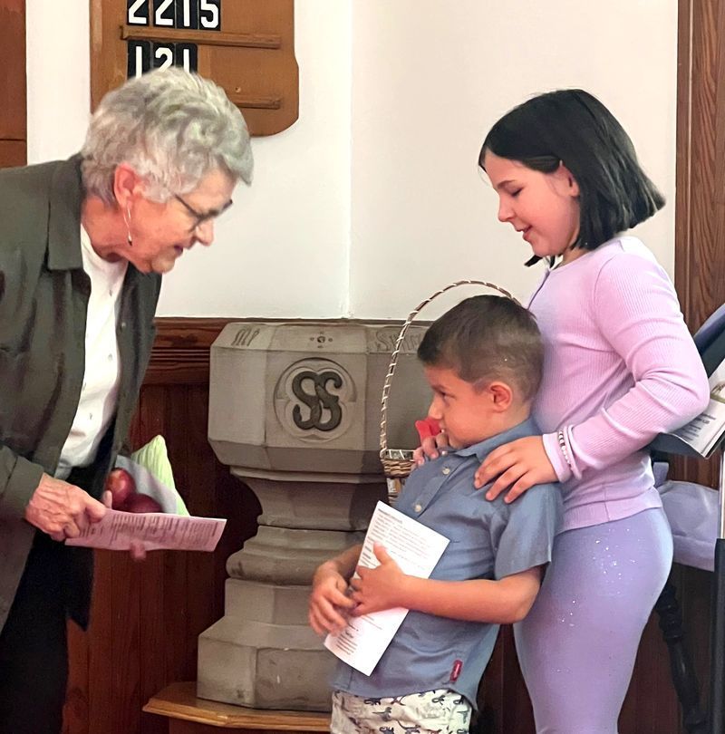 Pastor Jeannine asked the kids if they ever lost anything. She told The kids that she lost her car key soon after she got her first car. After she spent a lot of money to get a replacement key, she found the first key on her dresser. She gave the children each a pocket Jesus telling them she had lost her pocket Jesus. One of the children, little August found it in the sanctuary and brought it back to her.